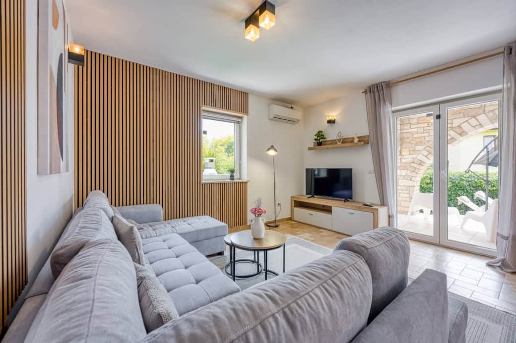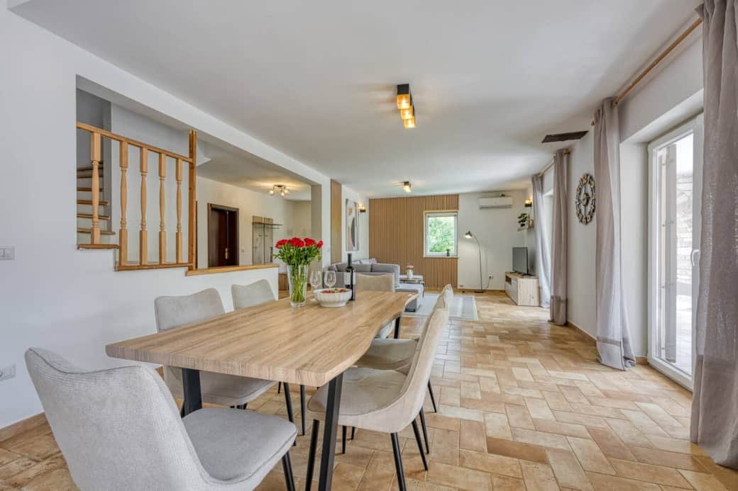 Three bedroom Villa LUMARE Terra is delighted to welcome you for an amazing holiday ★Unique amenities★ ✓ Private Swimming pool ✓ BBQ Area ✓ Fire Place ✓ Recently refurbrished ✓ Outdoor table ✓ Fully air-conditioned ✓ Equipped kitchen ✓ Heated during the winter ✓ Smart TV ★ Location ★ ✓ Beach - 15 minutes by car ✓ Supermarket - 15 minutes by car ✓ Aquapark - 15 minutes by car ✓ Traditional Istrian Restaurant •Konoba Gradina• 2 minutes by car or 7 min walk, 4.8★ rating on Google. A tribute to the heart of Istria, this villa captures the region’s rustic elegance. Surrounded by rolling vineyards and olive groves, it offers a peaceful retreat with a traditional stone facade, a private pool, and a panoramic view of the countryside. ★ LIVING ROOM ★ ✓ Comfortable Sofa with Pillows & Blankets (can be converted into an additional Double Bed) ✓ Smart TV ✓ Wood-Burning Fireplace ✓ Stylish Coffee Table ✓ Access to the garden ★ KITCHEN & DINING ★ It follows the Villa's modern design while offering cutting-edge appliances and spacious countertops on which you can make delicious meals if you choose to dine in the Villa. ✓ Microwave ✓ Stove ✓ Oven ✓ Coffee machine ✓ Hot Water Kettle ✓ Refrigerator/Freezer ✓ Dishwasher ✓ Glasses ✓ Silverware ✓ Pots & Pans The dining table, right next to the kitchen, is perfect for a memorable family meal. ✓ Dining Table with Seating for a total of 8 (when extended) ★ SLEEPING ARRANGEMENTS - 3 BEDROOMS ★ The master bedroom offers all the luxuries and comforts you would ever desire. ♛ Master Bedroom 1: Queen-Size Bed, private bathroom ♛ Upper floor Bedroom 2: Queen-size bed ♛ Upper floor Bedroom 3: Queen-size bed All bedrooms are equipped with a similar set of amenities: ✓ Premium Pillows, Linens, and Sheets ✓ Closets with Hangers and Shelves ✓ Nightstands ★ 3 BATHROOMS ★ ♛ Master bedroom private bathroom: ✓ Toilet ✓ Shower ✓ Mirror ✓ Towels ✓ Hair Dryer ✓Essential Toiletries ♛Lower floor living room bathroom: ✓ Mirror ✓ Toilet ✓ Towels ♛Upper floor bathroom: ✓ Toilet ✓ Shower ✓ Mirror ✓ Towels ✓ Hair Dryer ✓Essential Toiletries ★ OUTDOOR AREA ★ ✓ BBQ Grill ✓ Private swimming pool (lighted during night) ✓ Sitting area ✓ Terrace with a Dining Table with pool view ✓ Patio Loungers ♥ The Entire Villa is at your full disposal ♥ ♥All communications are done by phone, we are always available for any inquiries ♥